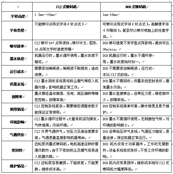 除此之外,目前DOD技术所需的墨水除去了稀释这一环节,直接进行喷码,避免了墨路循环的过程。因此,与CIJ技术相比,它更环保也更安全。